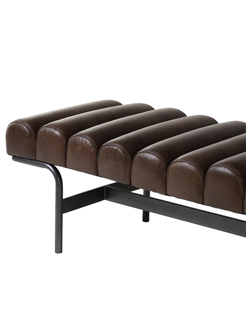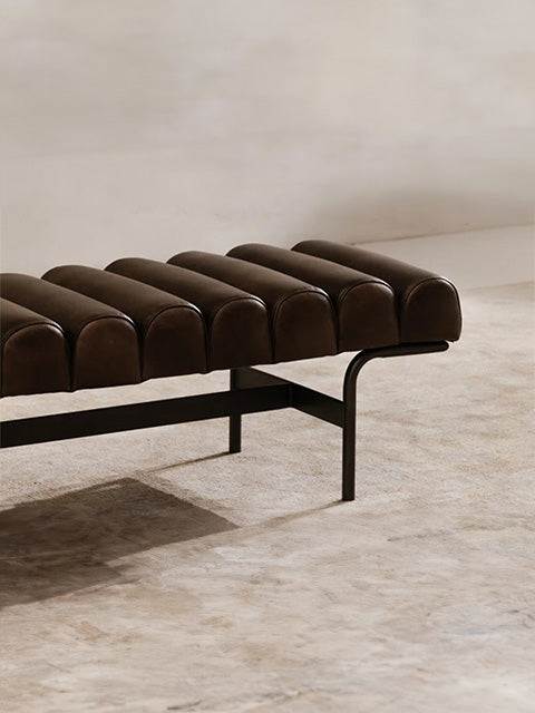 Layered in form, grounded in contrast. A bench that invites stillness, yet holds undeniable presence.