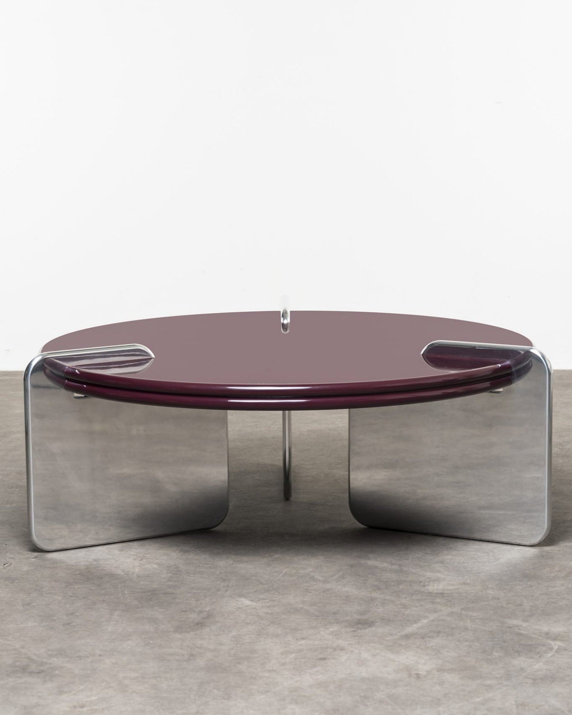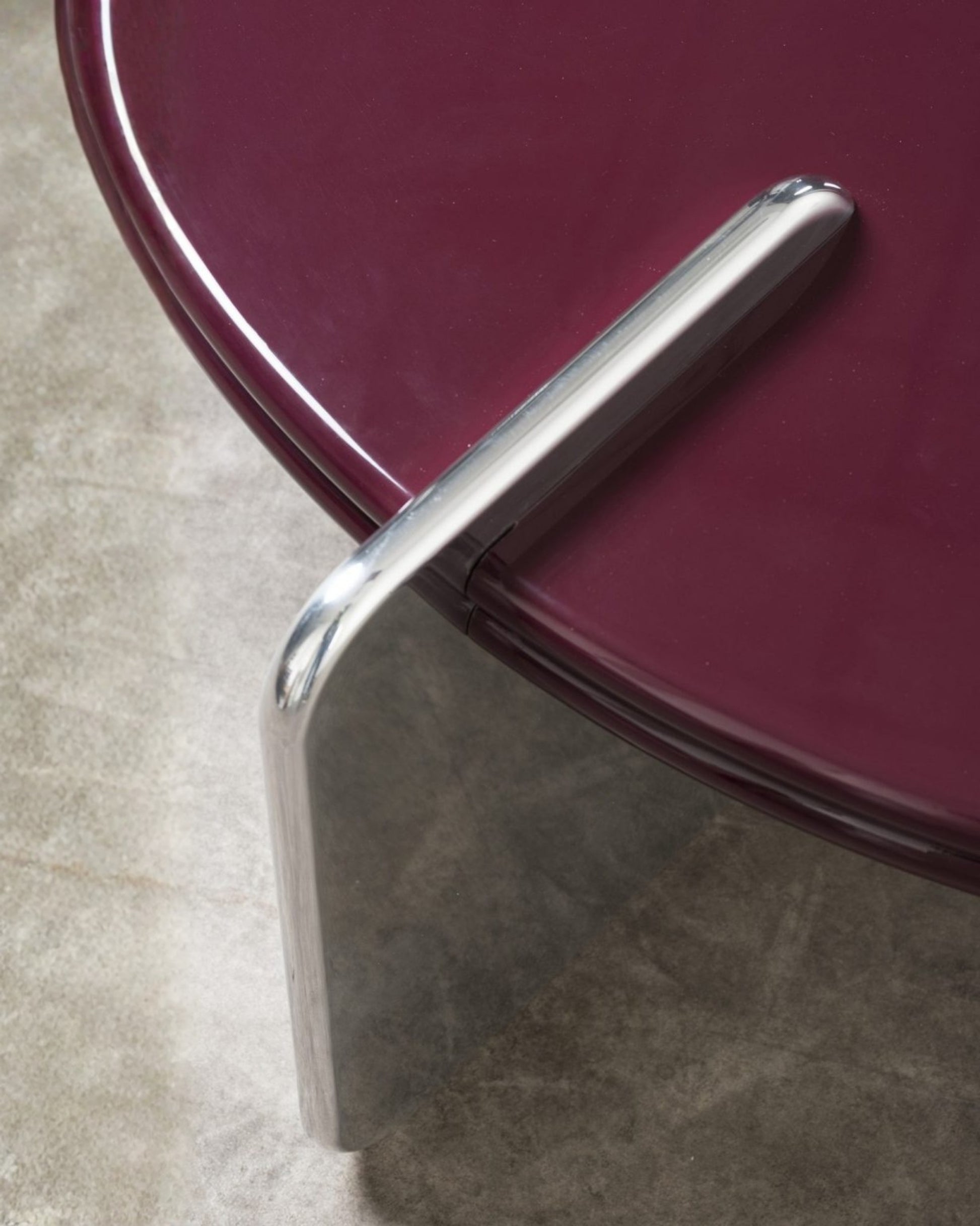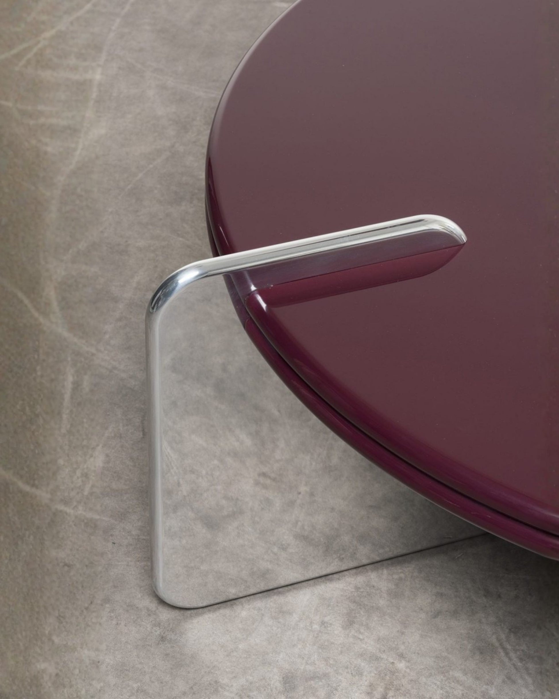 Rond merges reflection and color into a single, fluid form. Its metallic legs mirror their surroundings, while the burgundy top adds warmth and depth. Designed to interact with light, Rond is more than a table — it’s a living visual experience.