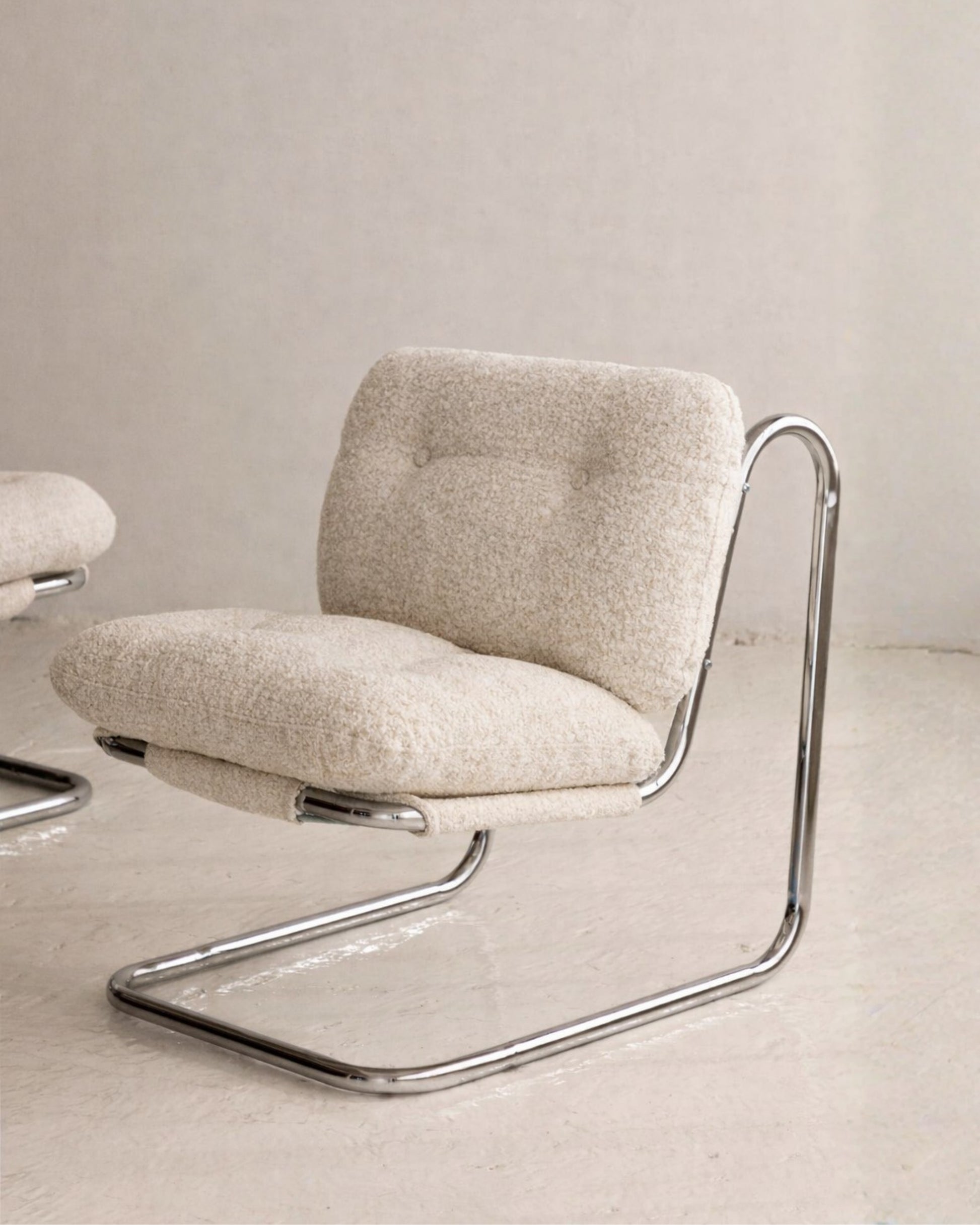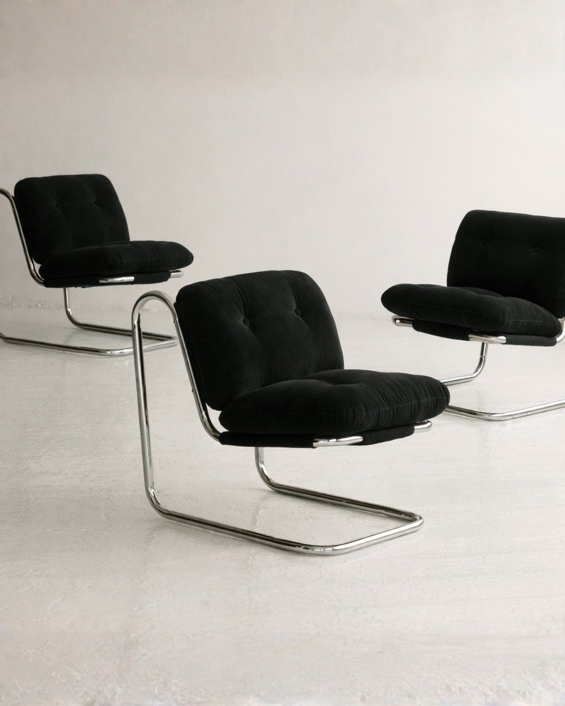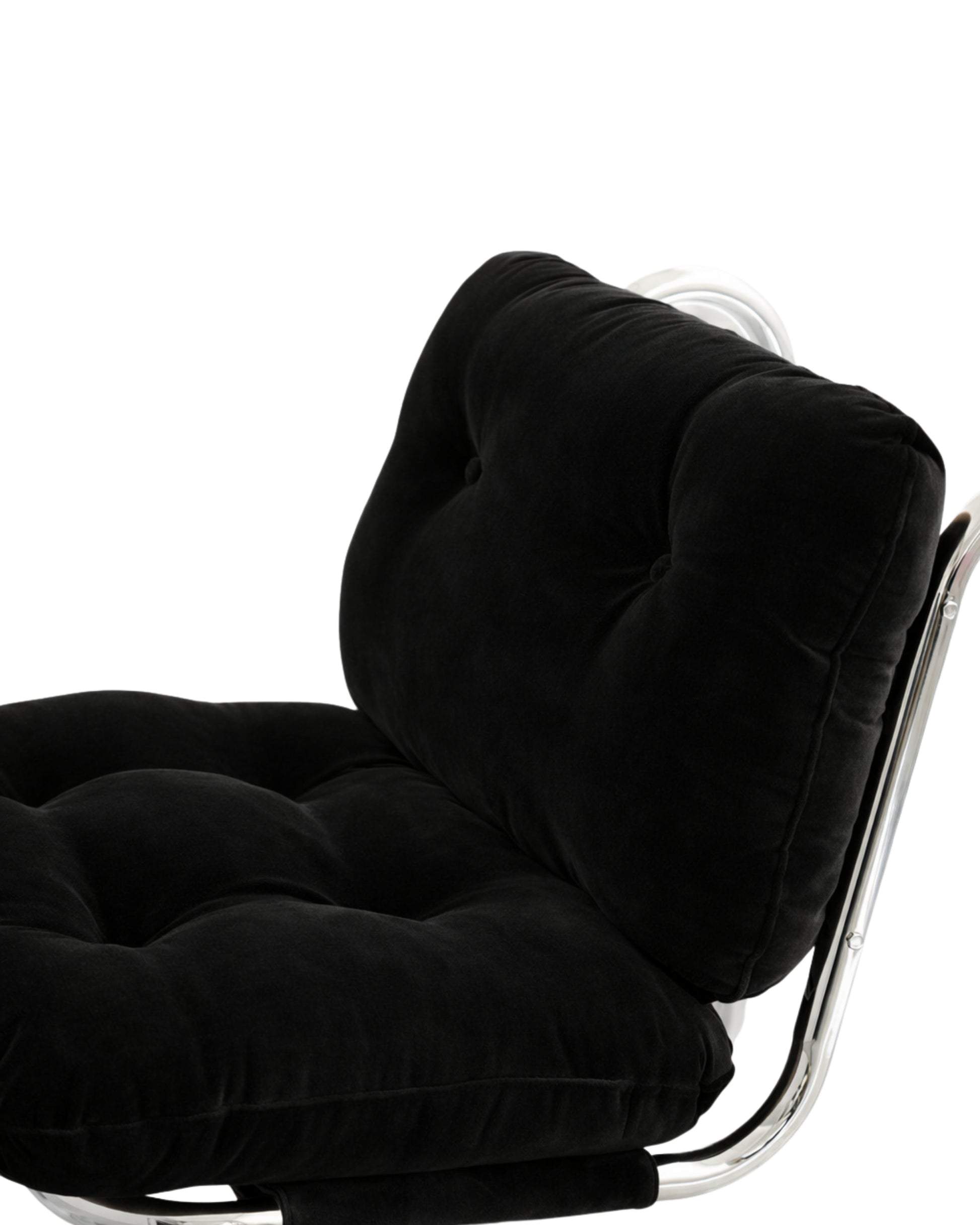 Light-reflecting polished chrome surfaces contrast beautifully with the soft, rich texture of velvet. Elor stands as a true statement piece — bringing character to modern interiors while effortlessly merging comfort with refined design.