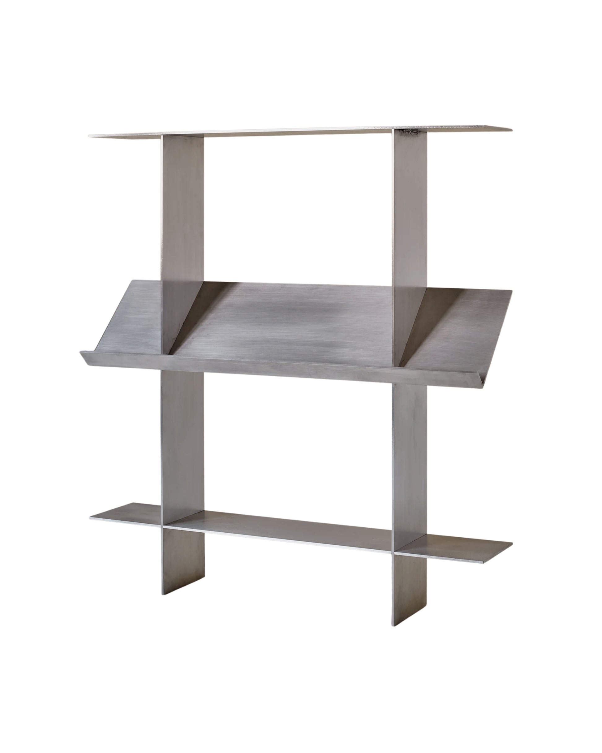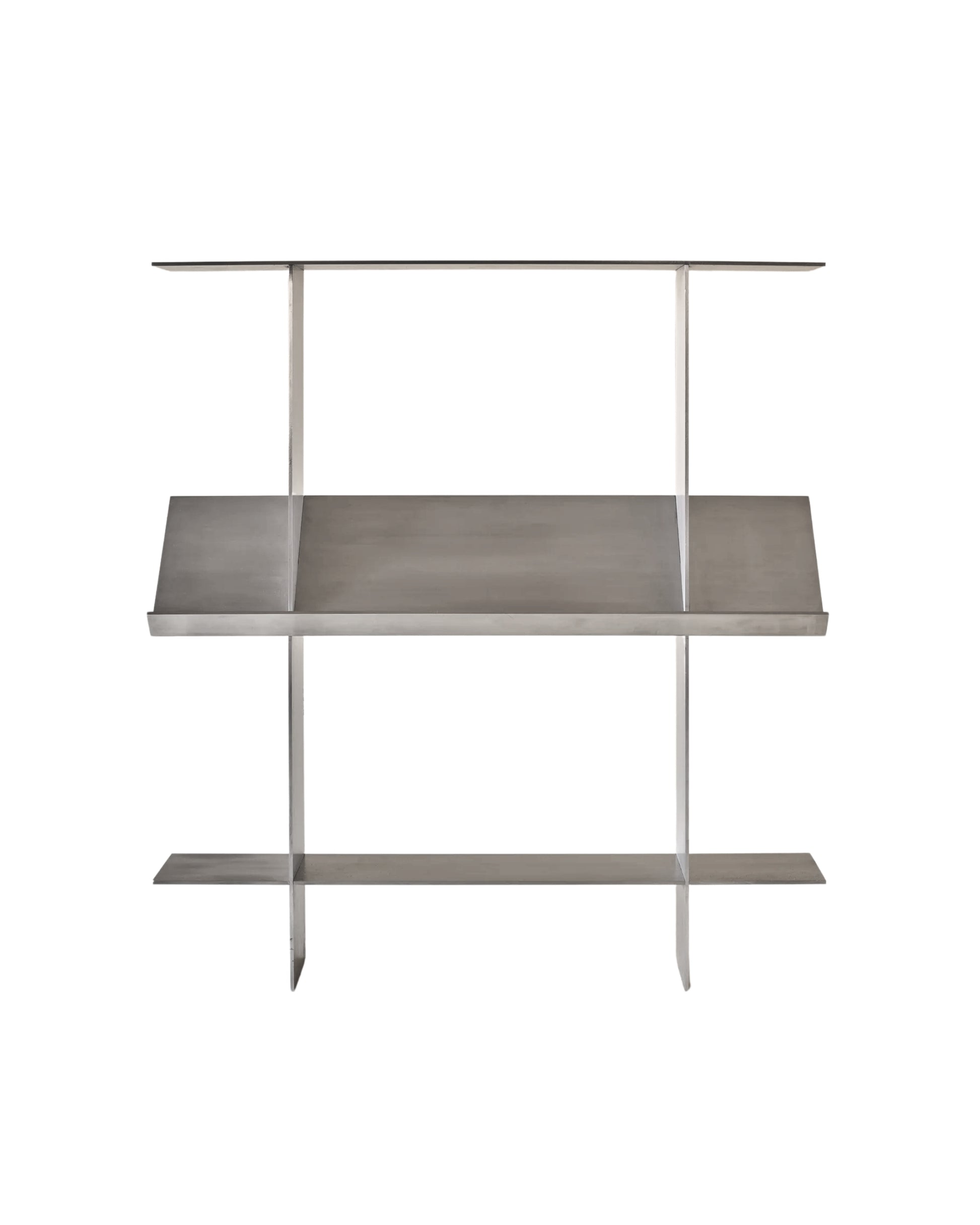 A sleek satin chrome shelving unit, TAL blends refined elegance with a contemporary industrial touch. Its clean lines and minimalist design make it a perfect fit for modern lofts and curated living spaces alike. Functional yet sculptural, it brings both style and durability — organizing and elevating any space it inhabits.